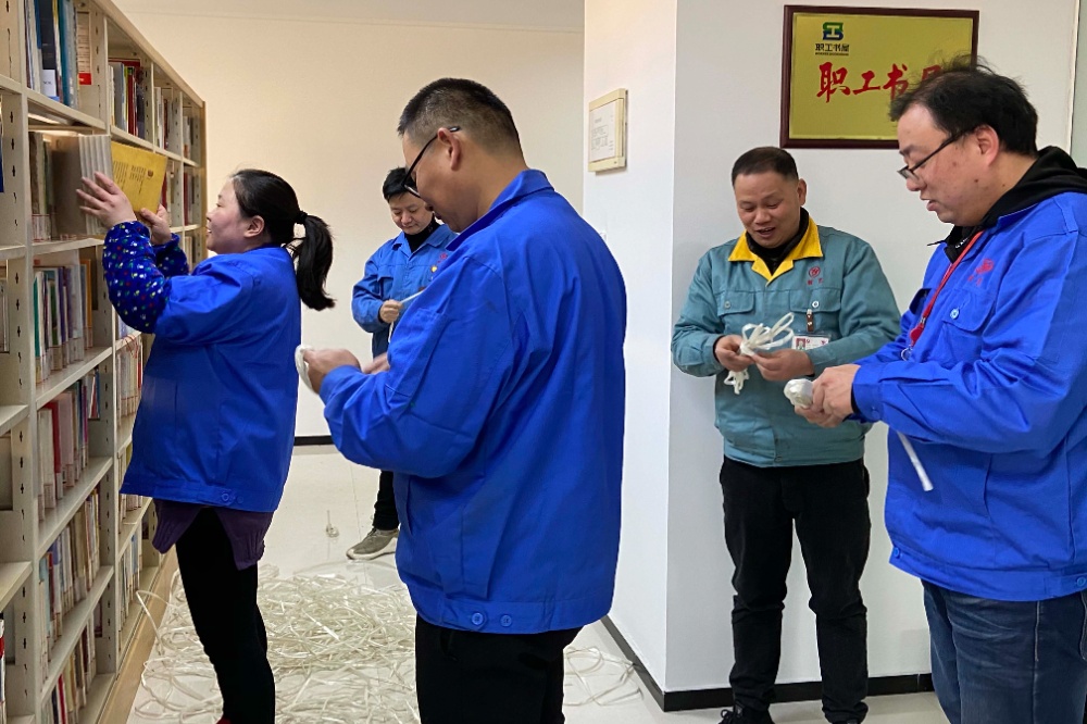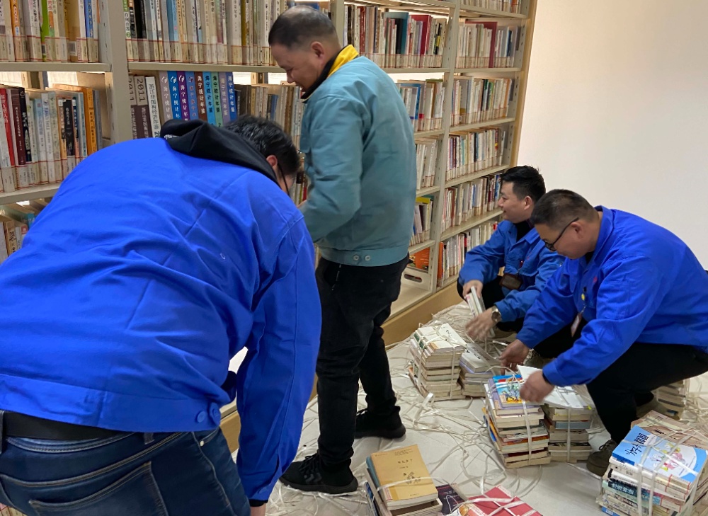 將2000冊(cè)圖書搬上書架并有序擺放是一項(xiàng)浩大的工作。2021年1月11日下午,幾位黨員志愿者發(fā)揮無私奉獻(xiàn)的志愿精神,來到我公司行政樓四樓的職工書屋,小心翼翼地把一摞一摞圖書搬上書架,并根據(jù)圖書的大小有序擺放整齊。在將圖書擺放整齊后,黨員志愿者們還將捆綁圖書的繩子進(jìn)行了整理。