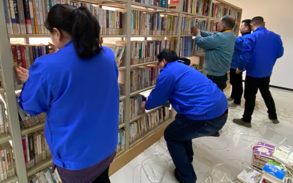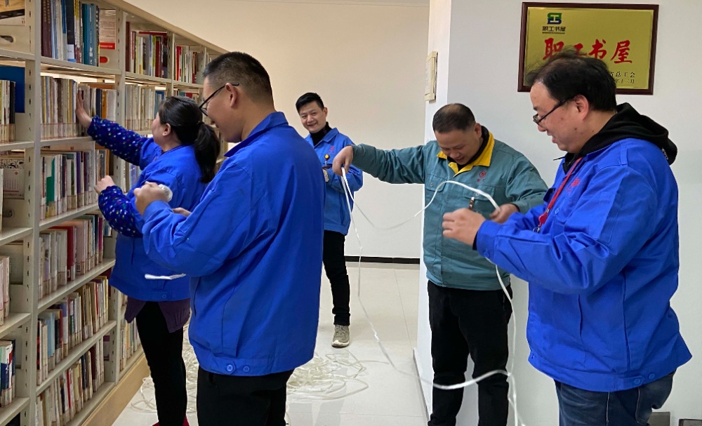 將2000冊(cè)圖書搬上書架并有序擺放是一項(xiàng)浩大的工作。2021年1月11日下午,幾位黨員志愿者發(fā)揮無私奉獻(xiàn)的志愿精神,來到我公司行政樓四樓的職工書屋,小心翼翼地把一摞一摞圖書搬上書架,并根據(jù)圖書的大小有序擺放整齊。在將圖書擺放整齊后,黨員志愿者們還將捆綁圖書的繩子進(jìn)行了整理。